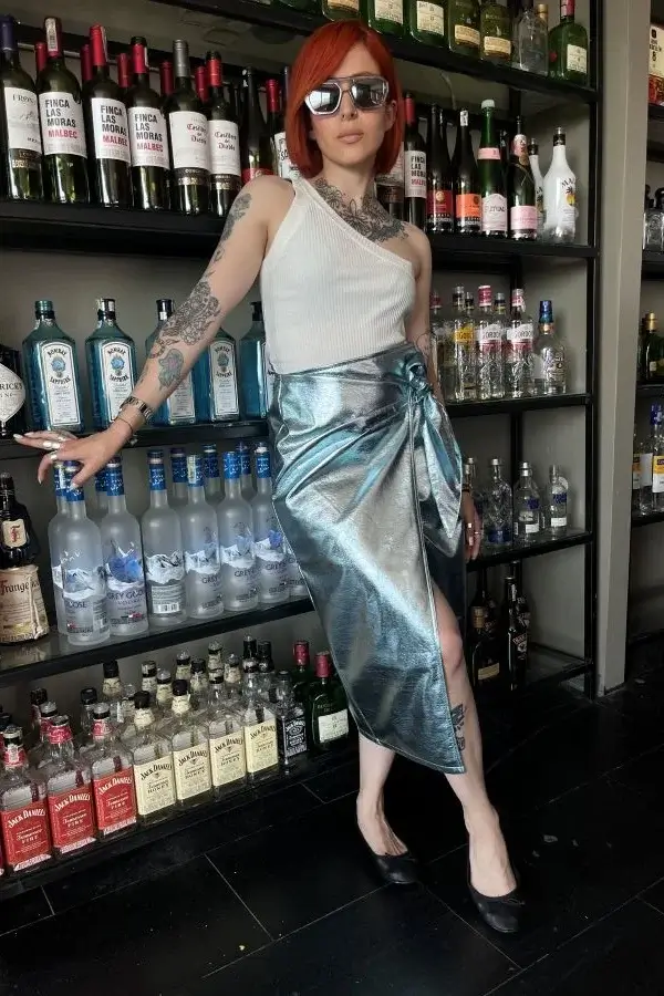 Falda Constellations Aqua ÚLTIMA UNIDAD Falda larga tipo tubo, corte recto en cuero vegano, color $ 455.000 El precio original era: $ 455.000.$ 280.000El precio actual es: $ 280.000. Add to Wishlist