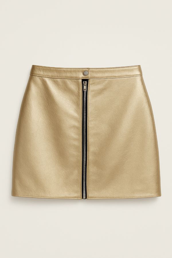 Mini falda prensada, en cuero strech vegano color negro, semi ajustada. Nota importante: Nuestras prendas están elaboradas en piel sintética de alta calidad. Debido a las características propias de este material, pueden presentarse ligeras variaciones en el color, textura, brillo u opacidad entre una prenda y otra. Estos detalles hacen que cada pieza sea única y no afectan su durabilidad ni estilo.
